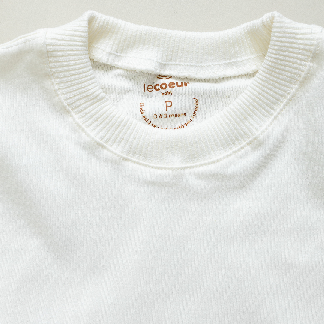 A camiseta manga curta é uma peça unissex com design minimalista, moderna e cheio de estilo. Com modelagem ampla, pensada para oferecer praticidade na hora da troca e muito conforto para o seu bebê em todos os momentos do dia.