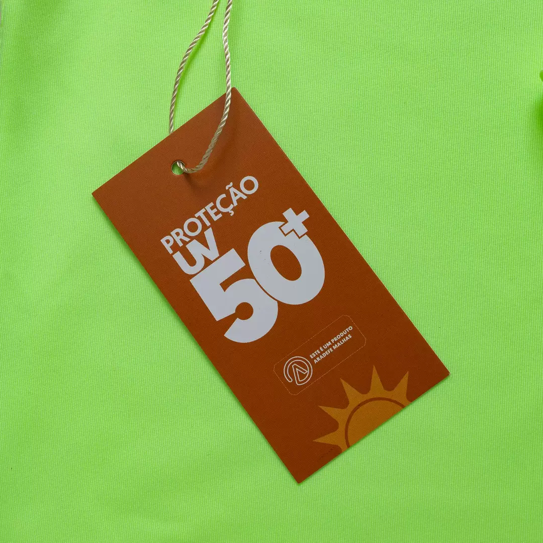 Feita em malha leve e respirável, possui proteção solar UV50+ ideal para passeios ao ar livre, praia ou piscina.
