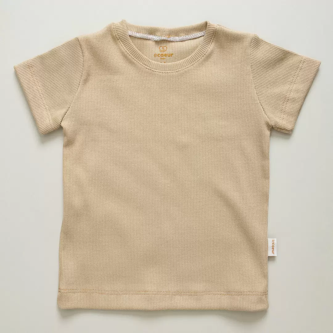 CAMISETA T-SHIRT MANGA CURTA BEBÊ UNISSEX EM RIBANA CAPPUCCINO