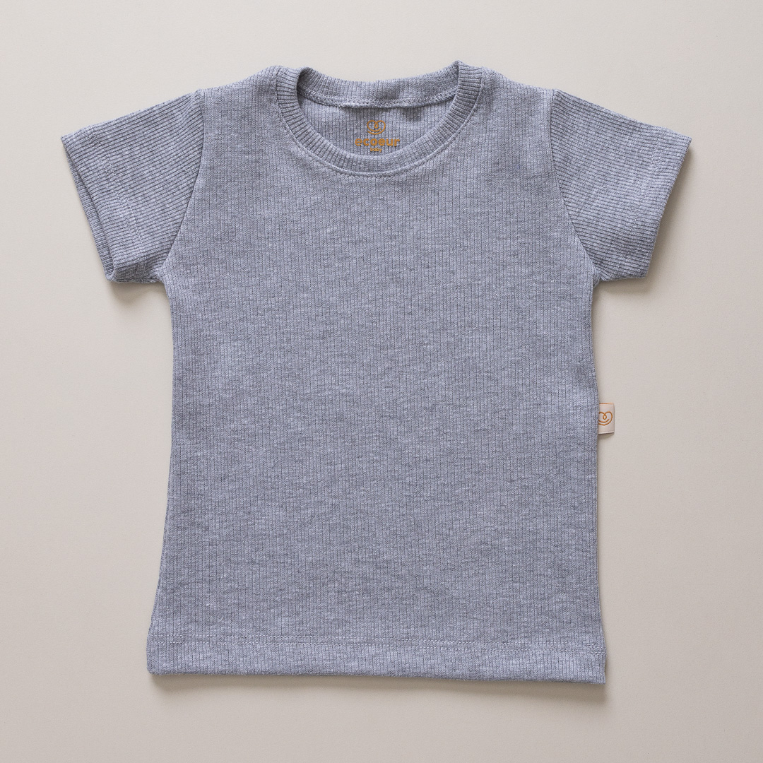 CAMISETA T-SHIRT MANGA CURTA BEBÊ UNISSEX EM RIBANA MESCLA