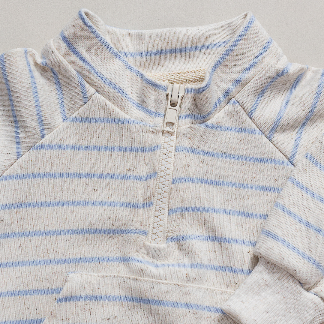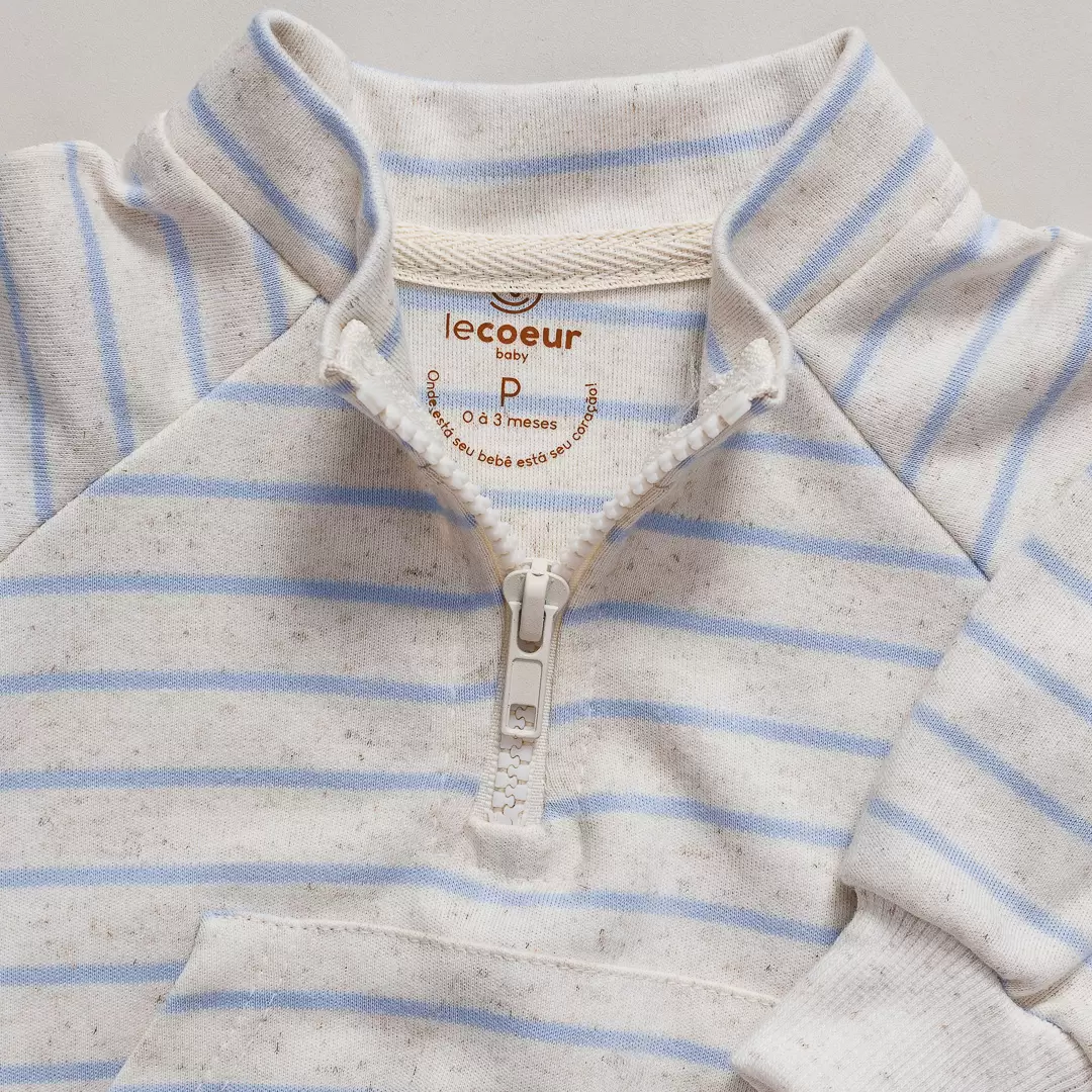 CASACO COM ZÍPER BEBÊ LISTRADO AZUL UNISSEX