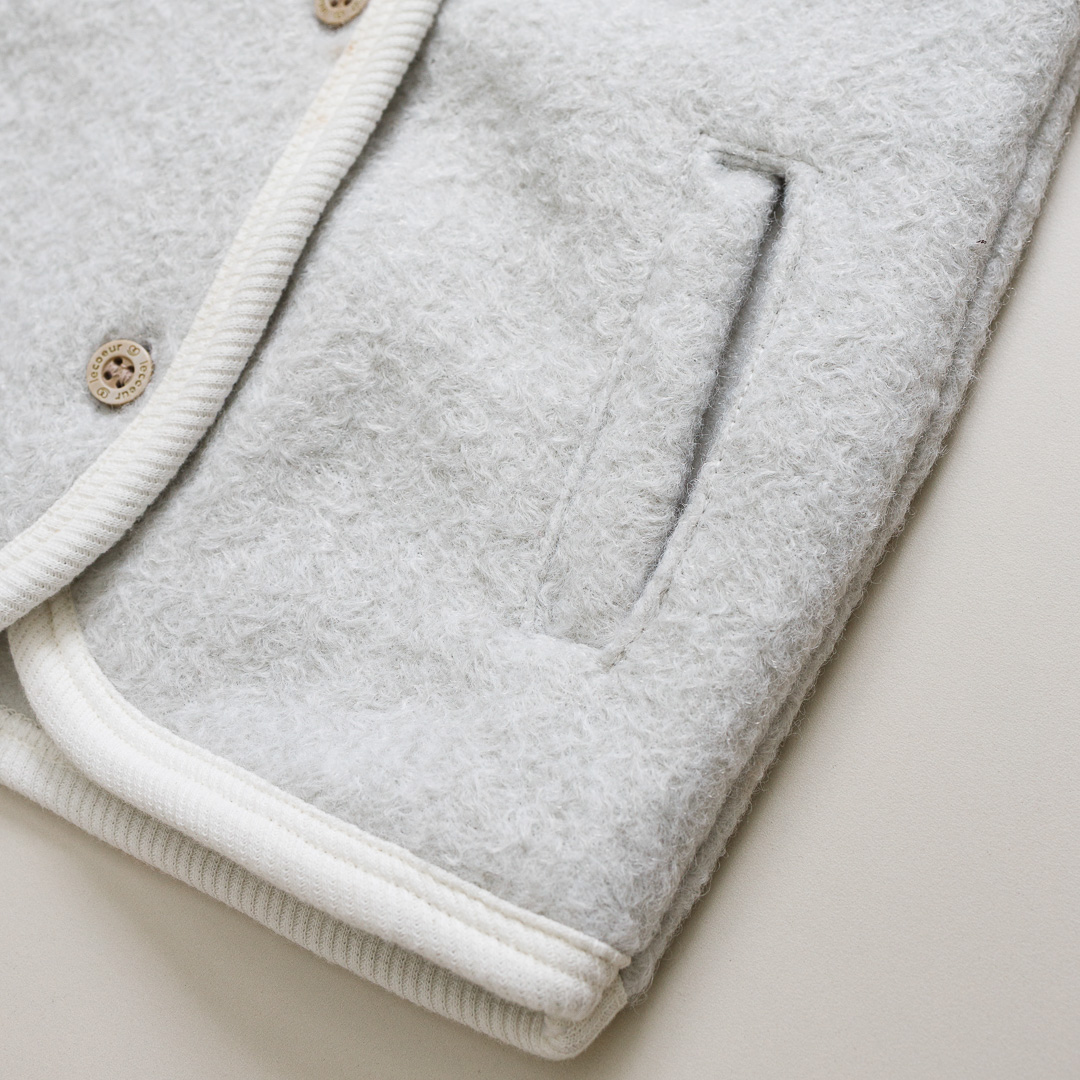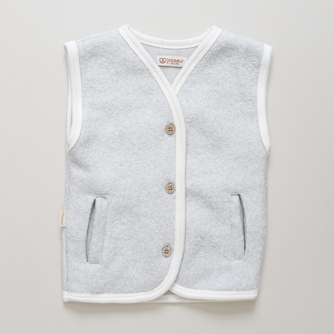 Confeccionado em tecido peluciado na cor cinza, possui um toque macio e aconchegante, perfeito para a pele delicada do bebê. O fechamento em botões na parte frontal traz praticidade no vestir e um detalhe delicado que valoriza ainda mais a peça. Conta também com bolsos laterais que adicionam funcionalidade e um charme extra ao visual.