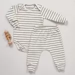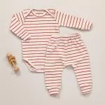 CONJUNTO BODY MANGA LONGA E CALÇA SUEDINE UNISSEX LISTRADO AZUL