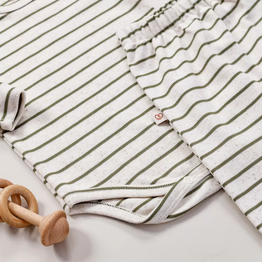 CONJUNTO BODY MANGA LONGA E CALÇA SUEDINE UNISSEX LISTRADO VERDE OLIVA