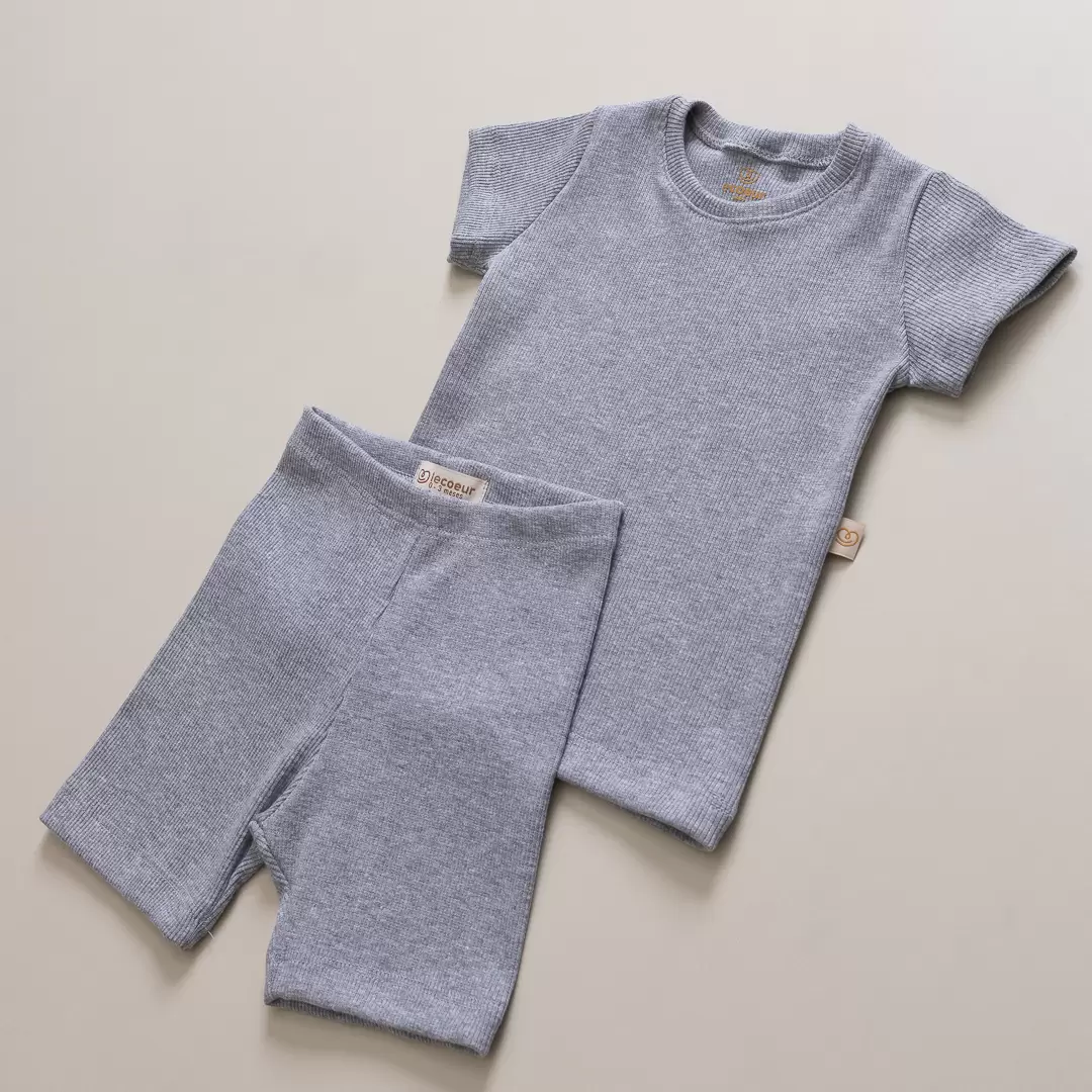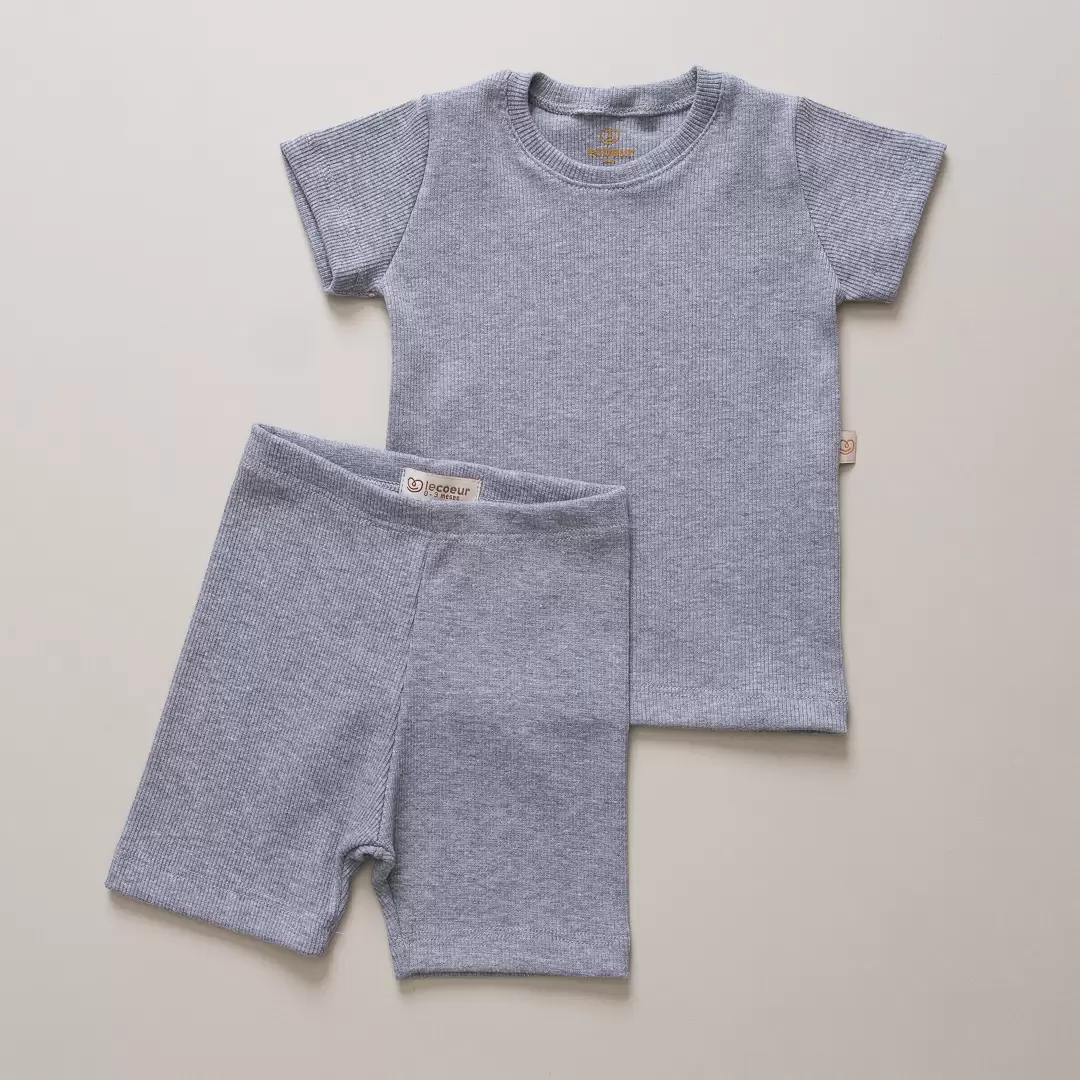 O conjunto em ribana é composto por T-shirt e shorts unissex, com design minimalista, moderno e super confortável. Pensado para o dia a dia, oferece praticidade na hora da troca e liberdade de movimentos para o seu bebê brincar à vontade.