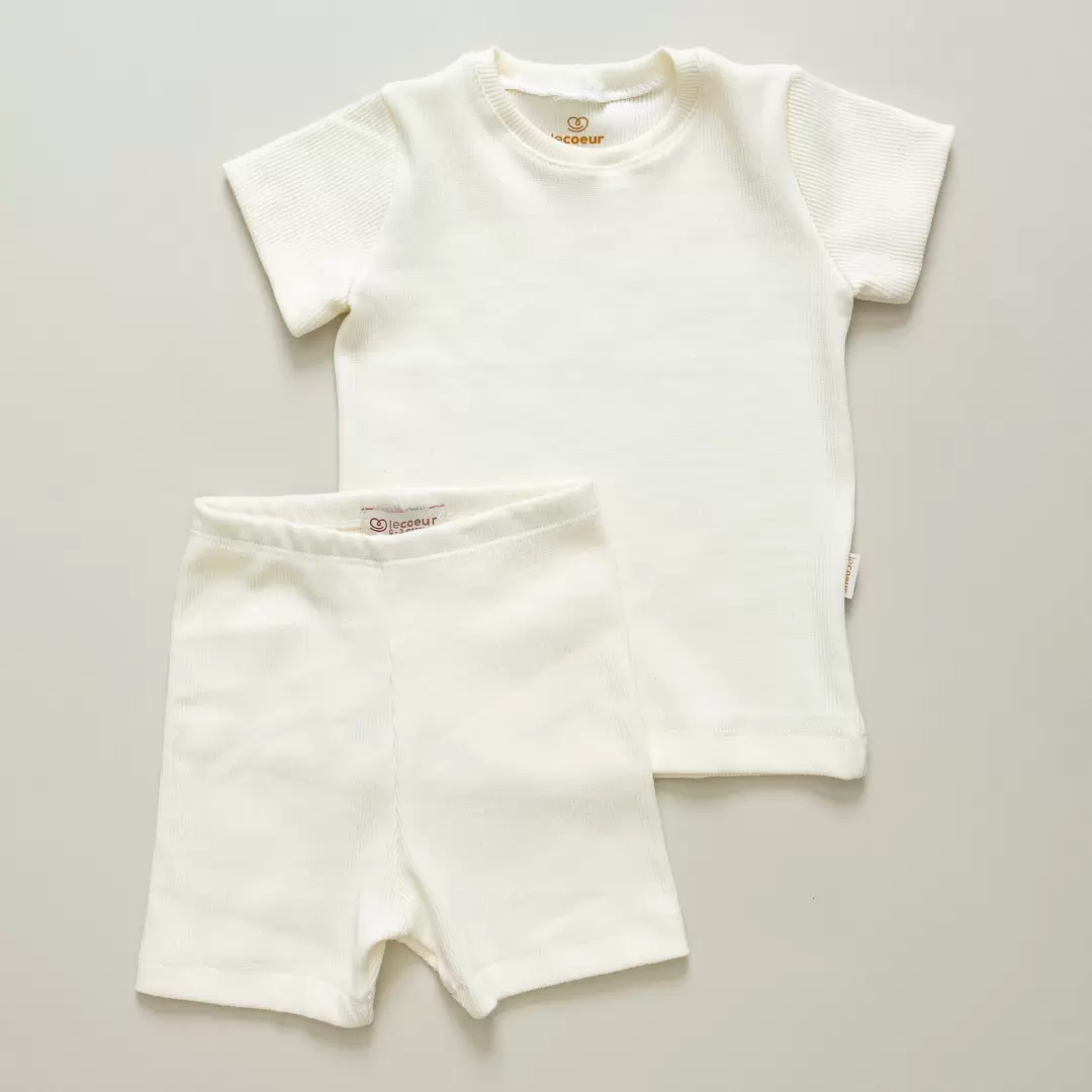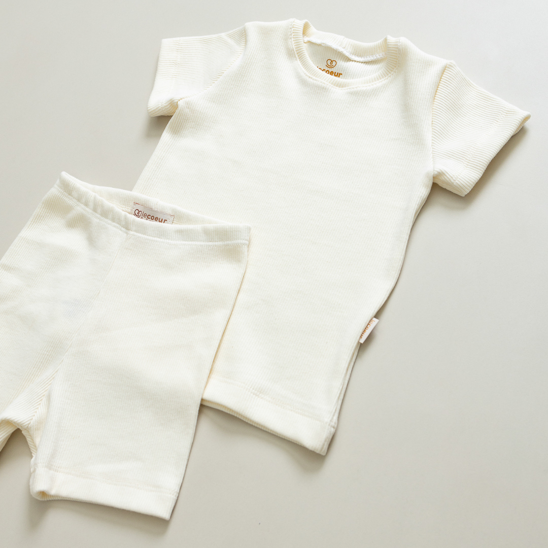 O conjunto em ribana é composto por T-shirt e shorts unissex, com design minimalista, moderno e super confortável. Pensado para o dia a dia, oferece praticidade na hora da troca e liberdade de movimentos para o seu bebê brincar à vontade.