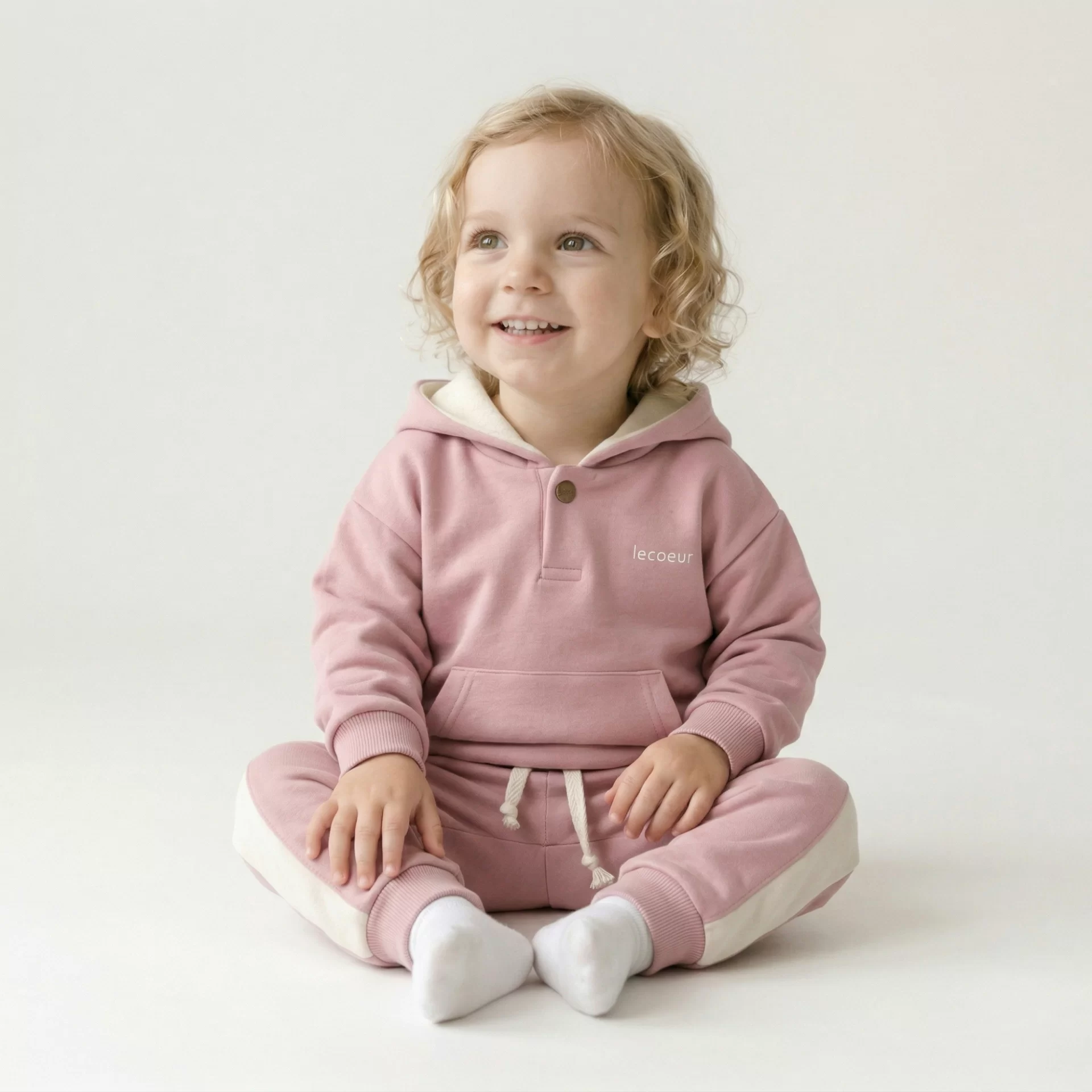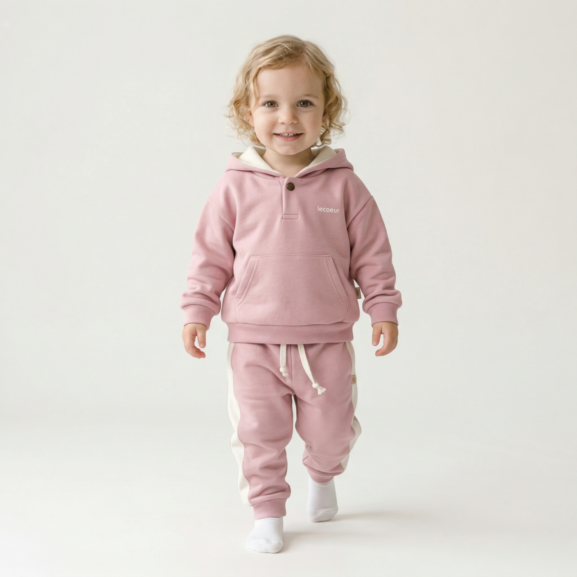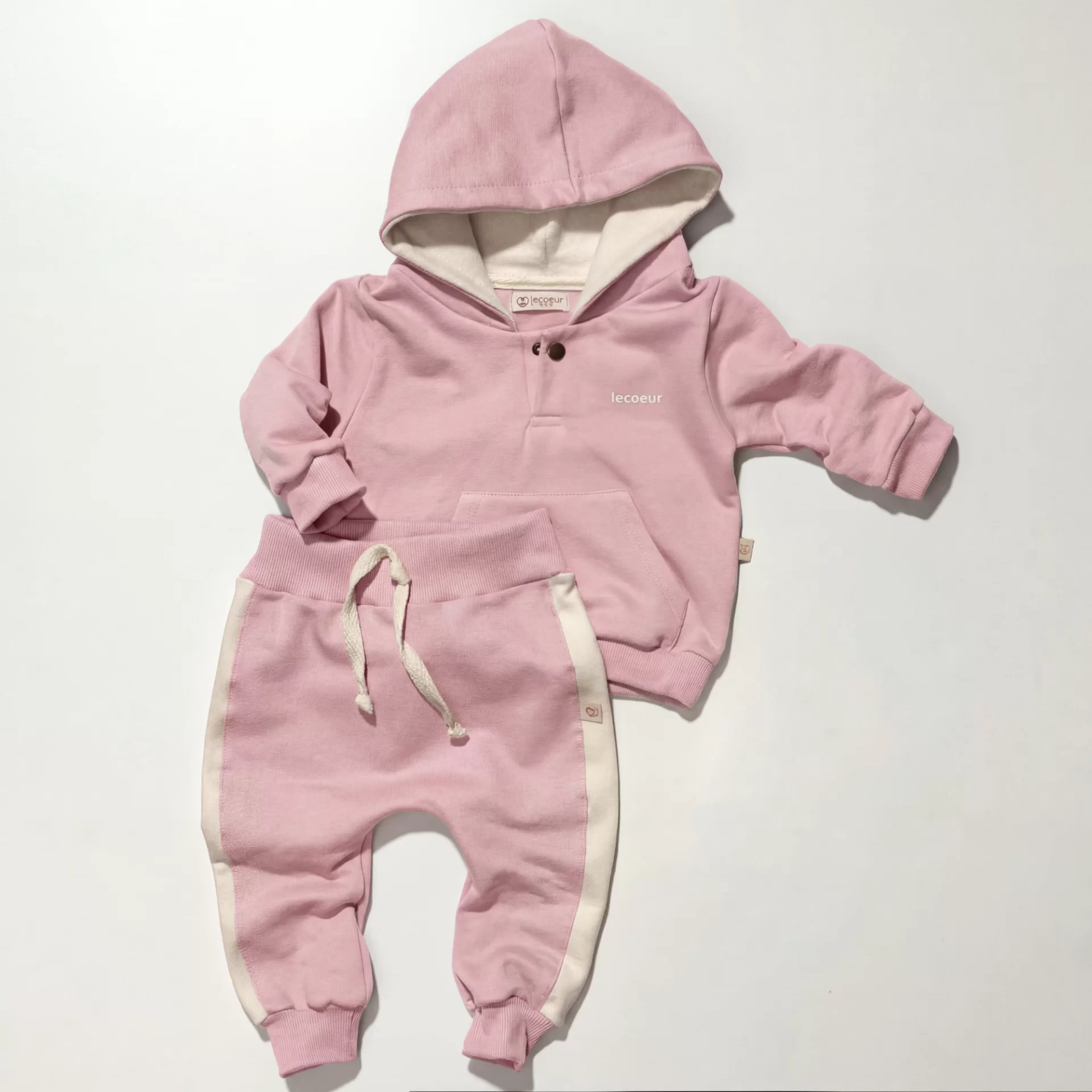 Bem quentinho! O conjunto é composto por casaco com capuz duplo, abertura frontal com botão de pressão e aplique Le Coeur, e calça saruel com recorte lateral. Confeccionado em Moletom Peluciado 100% algodão, é macio, quentinho e ideal para os dias frios. Com modelagem ampla e moderna, é perfeito para usar com outras peças por baixo, garantindo conforto e estilo para o bebê em qualquer ocasião.