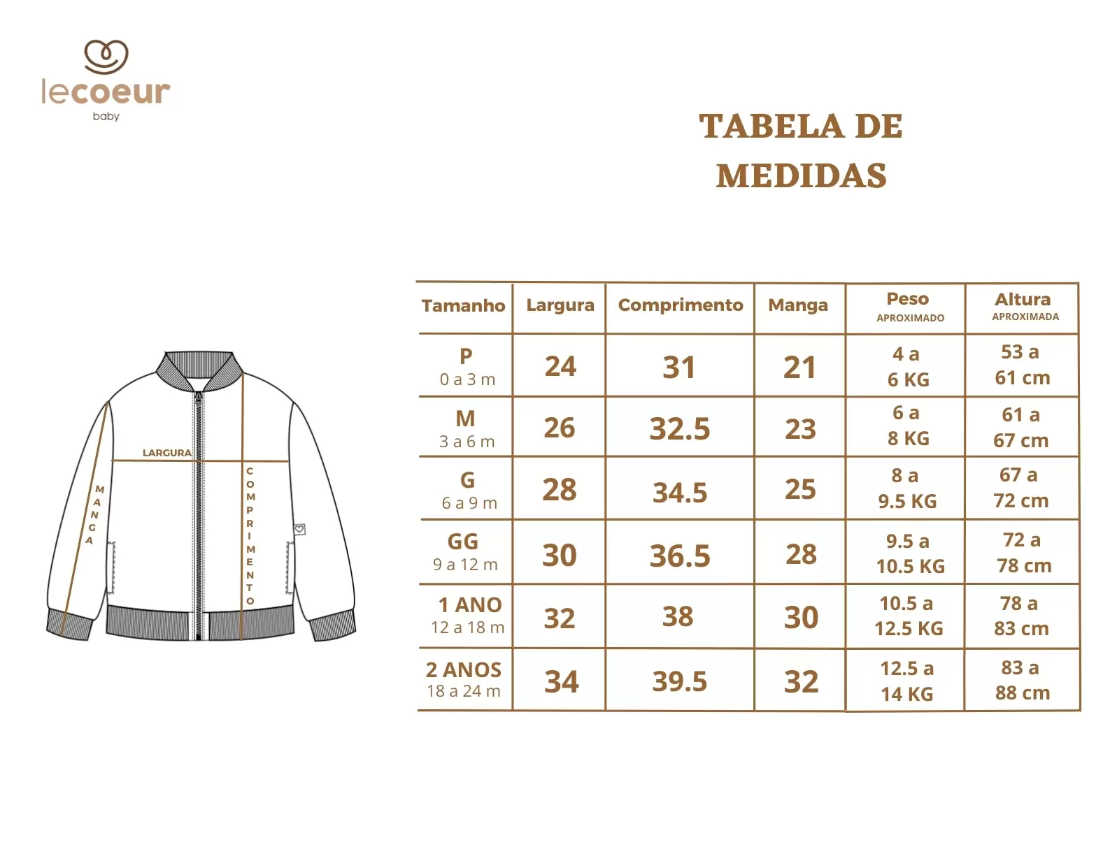 - Fácil de vestir: Abertura frontal com zíper que facilita na hora de vestir e trocar o bebê.