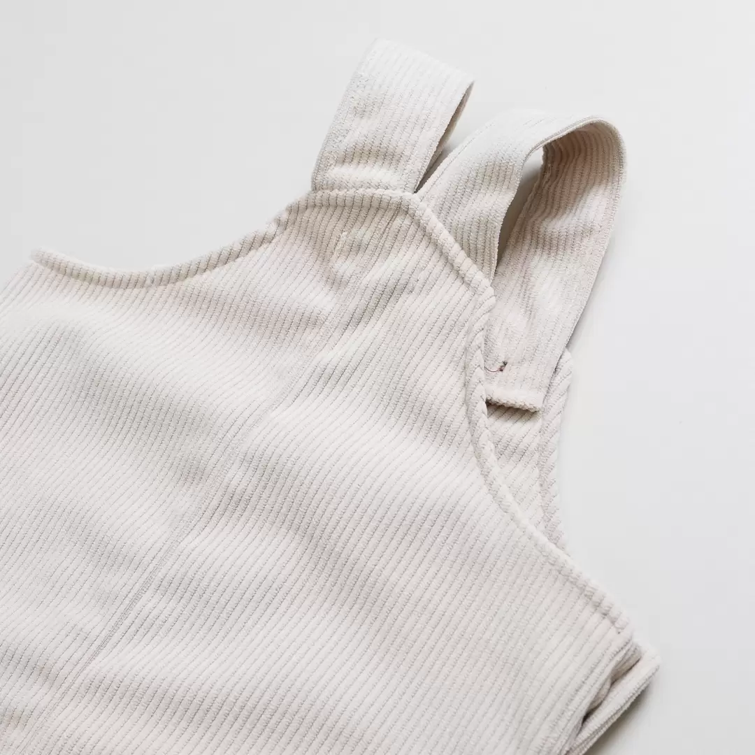JARDINEIRA BEBÊ VELUDO COTELÊ UNISSEX OFF WHITE – QUENTINHA E SUPER ESTILOSA