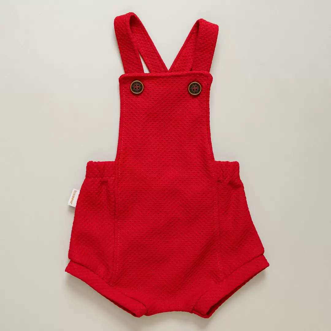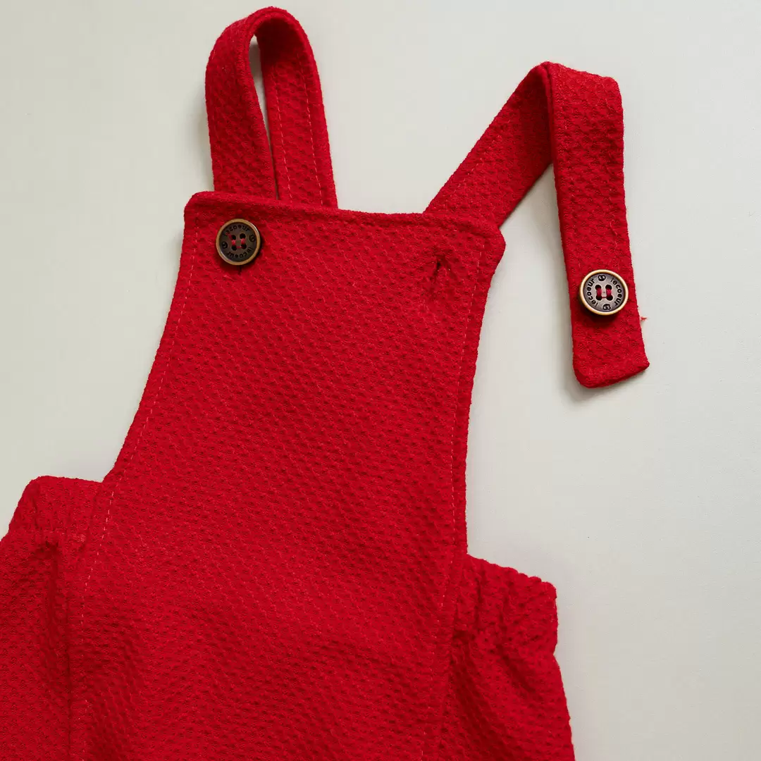 JARDINEIRA ROMPER BEBÊ UNISSEX POLO NORTE VERMELHA