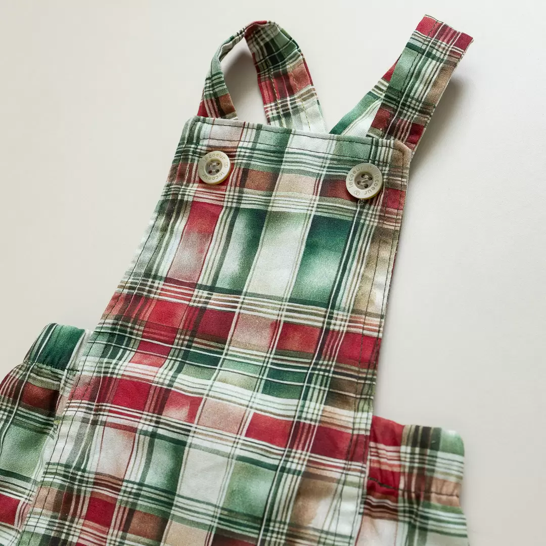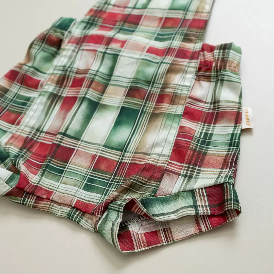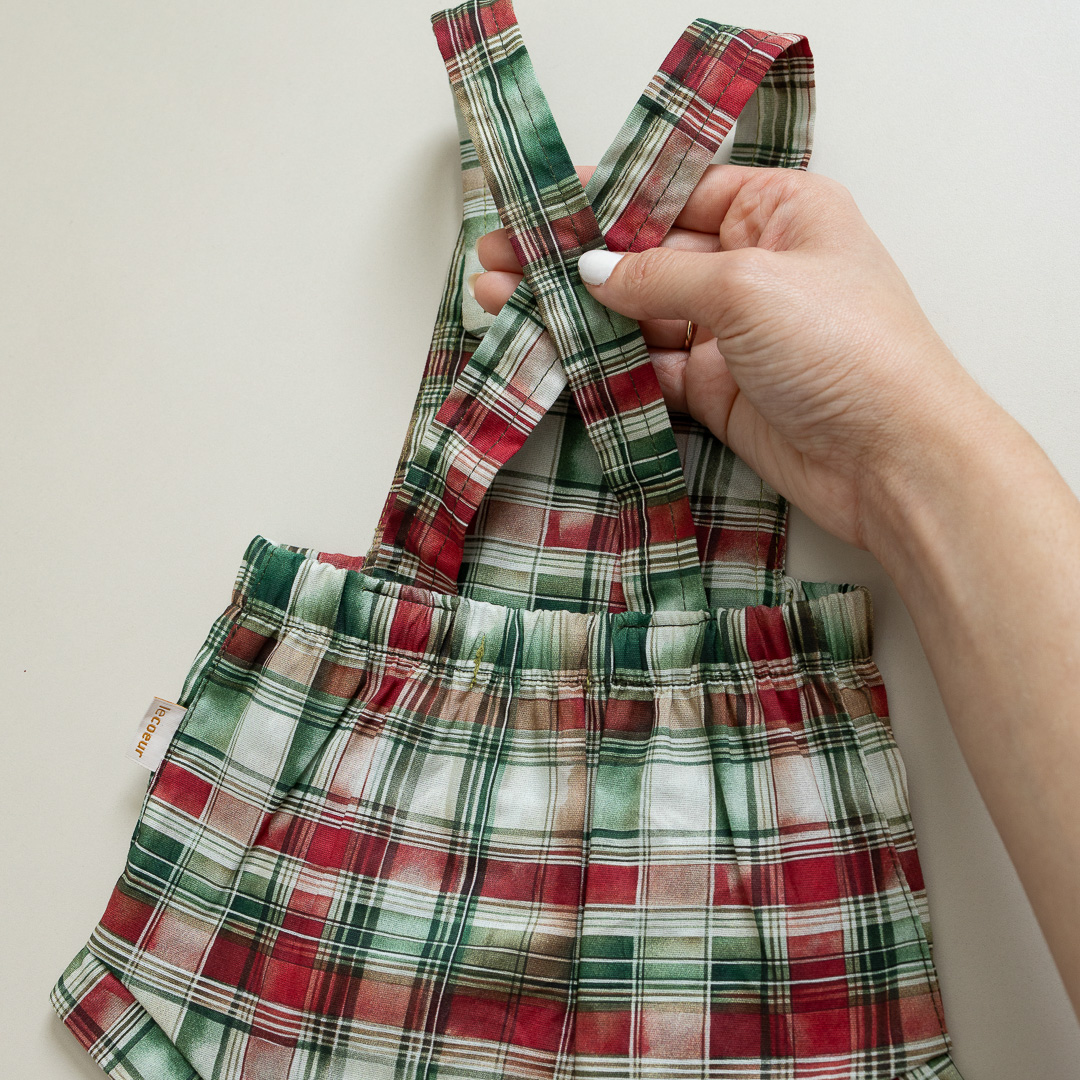 A Jardineira Romper Xadrez é perfeita para deixar o Natal do seu bebê ainda mais encantador!
