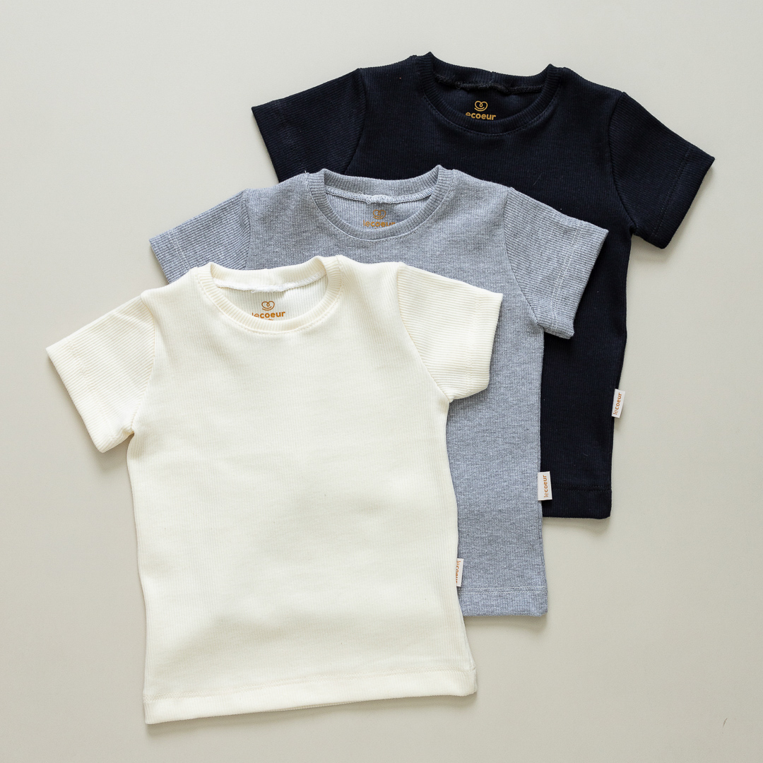 KIT COM 3 CAMISETAS – T-SHIRT MANGA CURTA BEBÊ UNISSEX EM RIBANA