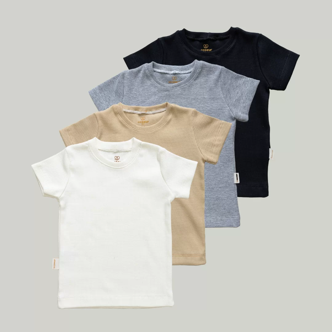 KIT COM 4 CAMISETAS – T-SHIRT MANGA CURTA BEBÊ UNISSEX EM RIBANA