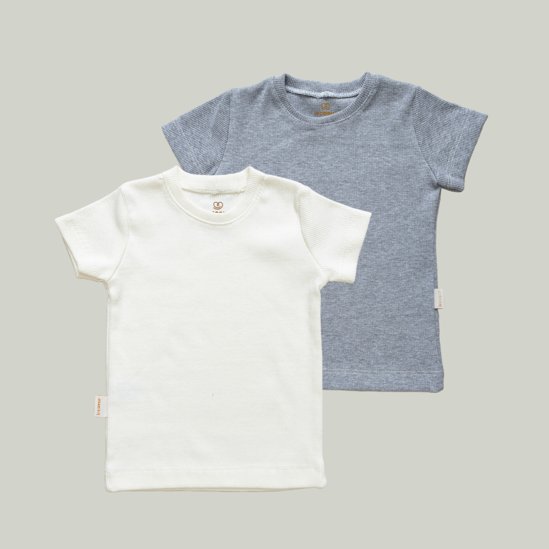 KIT COM 2 CAMISETAS – T-SHIRT MANGA CURTA BEBÊ UNISSEX EM RIBANA