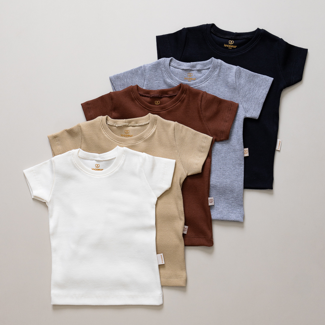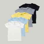 KIT COM 5 CAMISETAS – T-SHIRT MANGA CURTA BEBÊ UNISSEX EM RIBANA