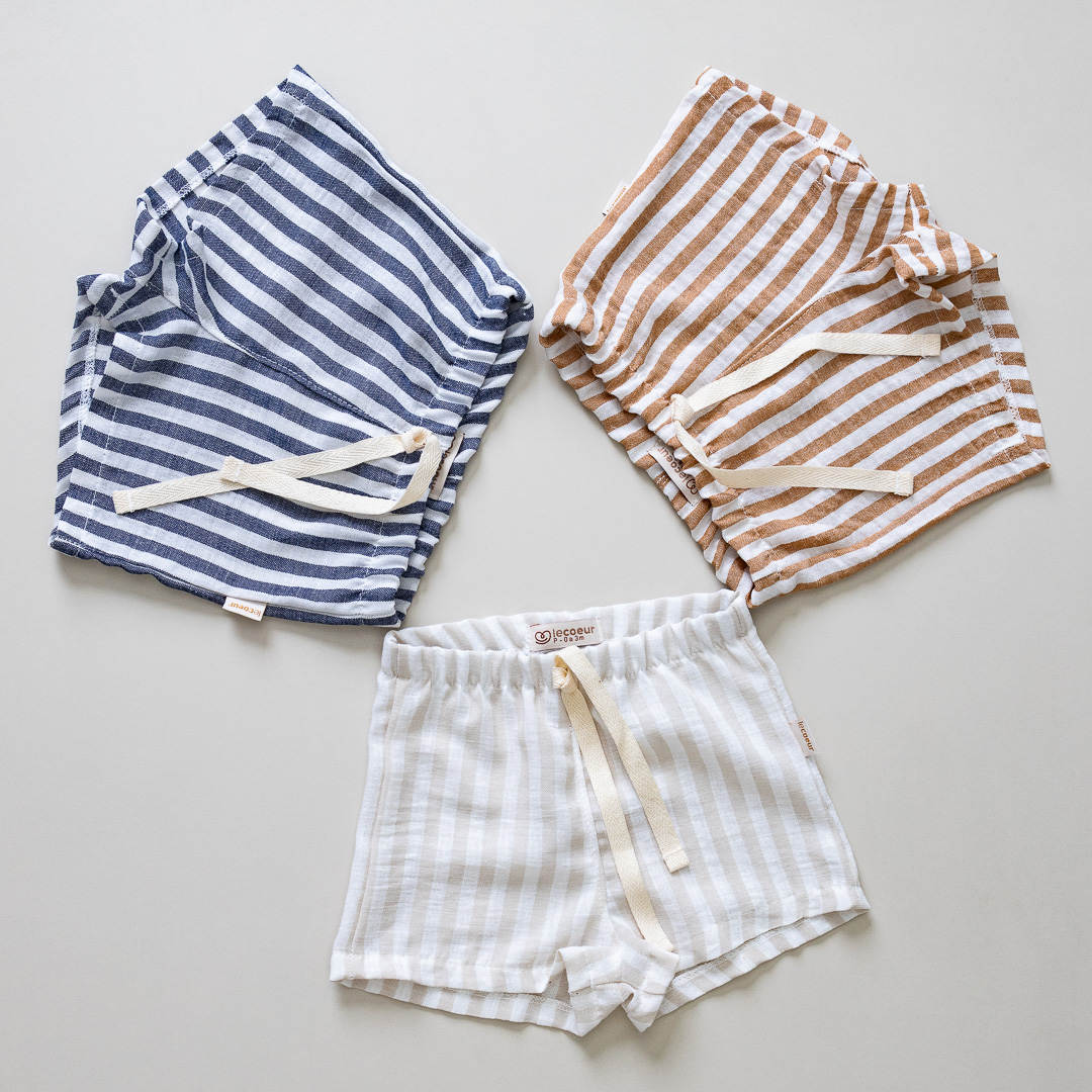kIT COM 3 SHORTS BEBÊ RETRÔ UNISSEX LISTRADO