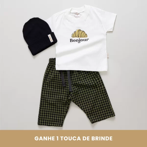 Look completo para você não perder tempo! Você compra a camiseta manga curta, a calça e ganha de brinde a touca Preta! Peças com design minimalista, modernas e cheio de estilo. Com modelagem ampla, pensada para oferecer praticidade na hora da troca e muito conforto para o seu bebê em todos os momentos do dia.