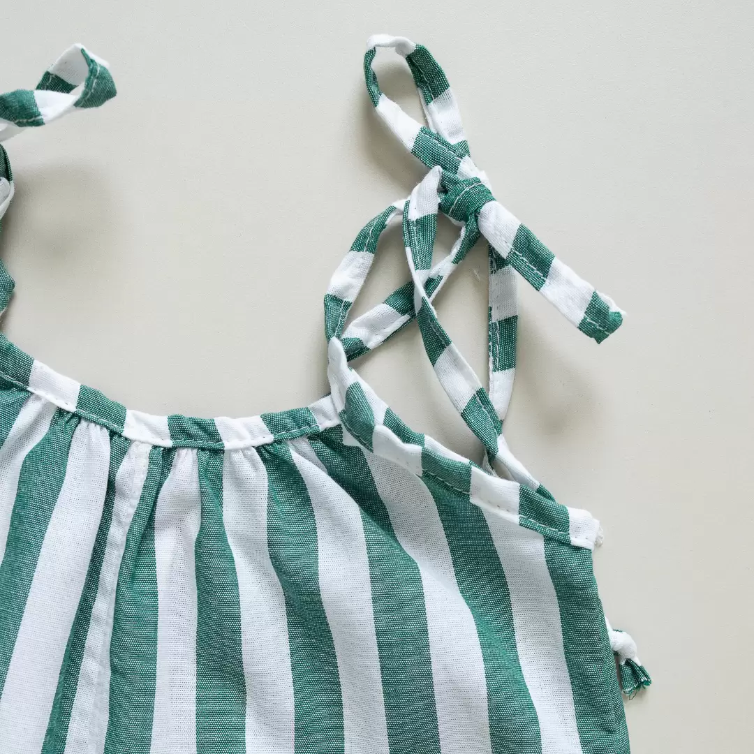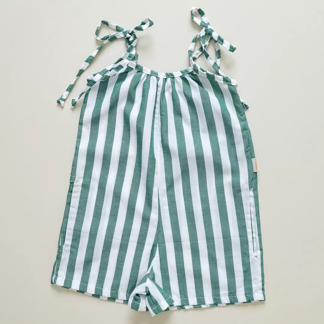 MACACÃO INFANTIL LISTRADO UNISSEX COM ALÇA AJUSTÁVEL – COR VERDE