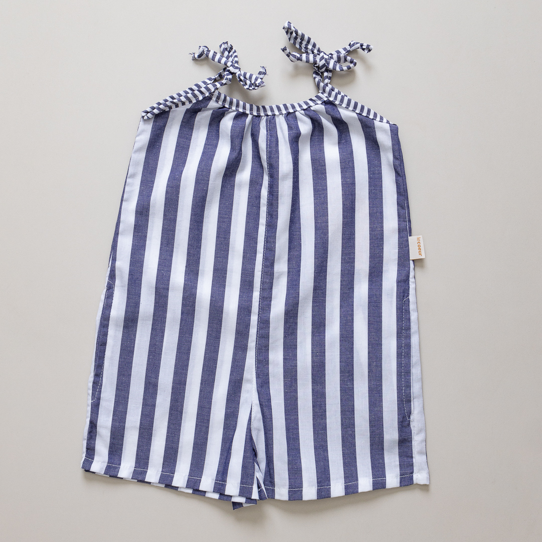 Delicadeza e charme em cada detalhe! Nosso macacão infantil é confeccionado em tecido 100% algodão, leve e fresquinho, perfeito para os dias mais quentes. Com listras atemporais que dão charme e alegria ao guarda-roupa do seu bebe, ele traz um toque romântico que encanta.