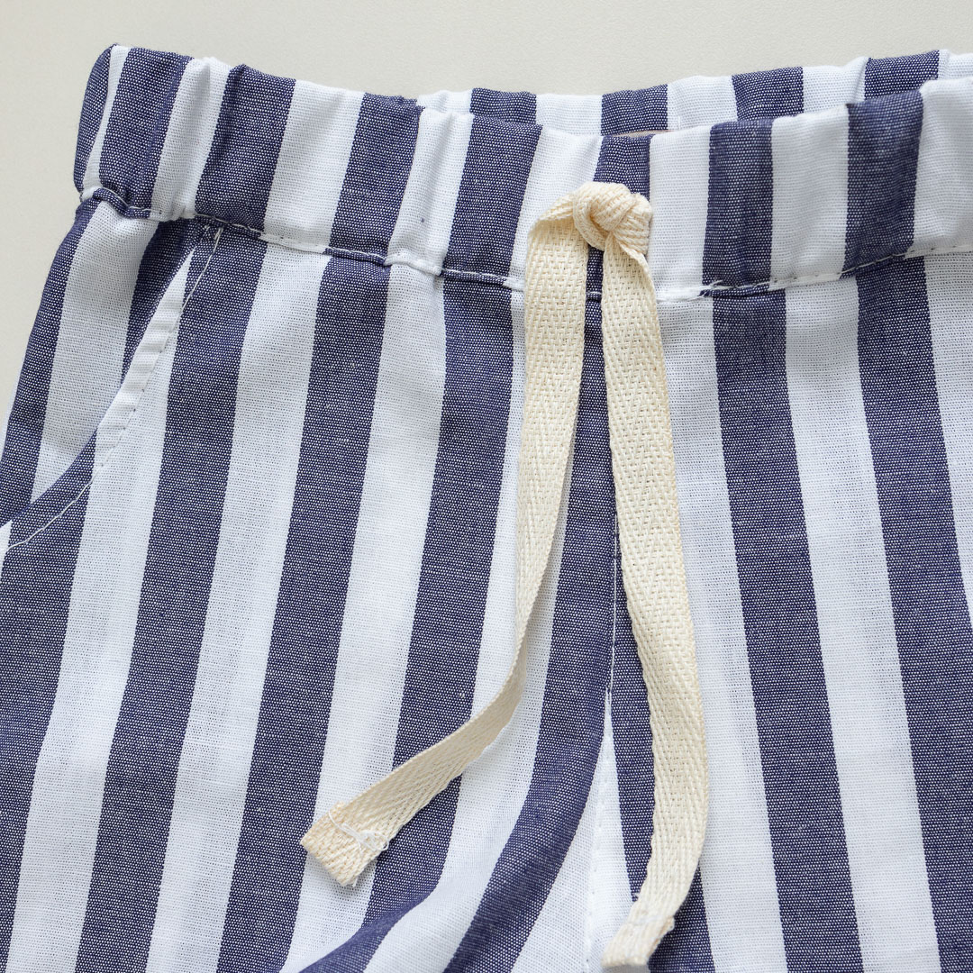 Com elástico macio na cintura, oferece praticidade na hora de vestir e liberdade total de movimentos. O design listrado azul e branco traz um ar moderno e atemporal, combinando facilmente com outras peças da coleção para compor looks cheios de charme.