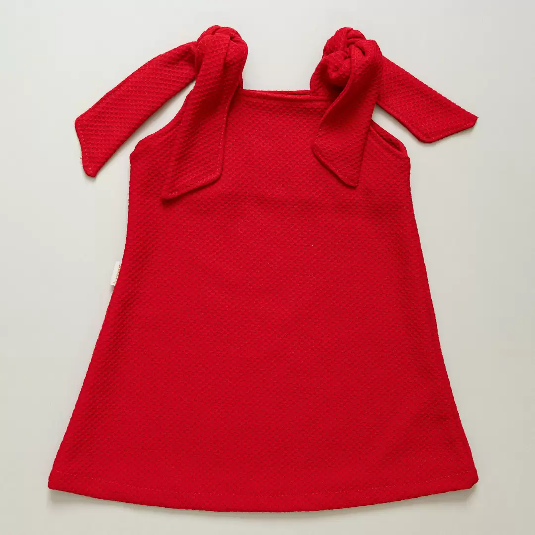 VESTIDO INFANTIL NOEL VERMELHO E LAÇO PARA AMARRAR NAS ALÇAS